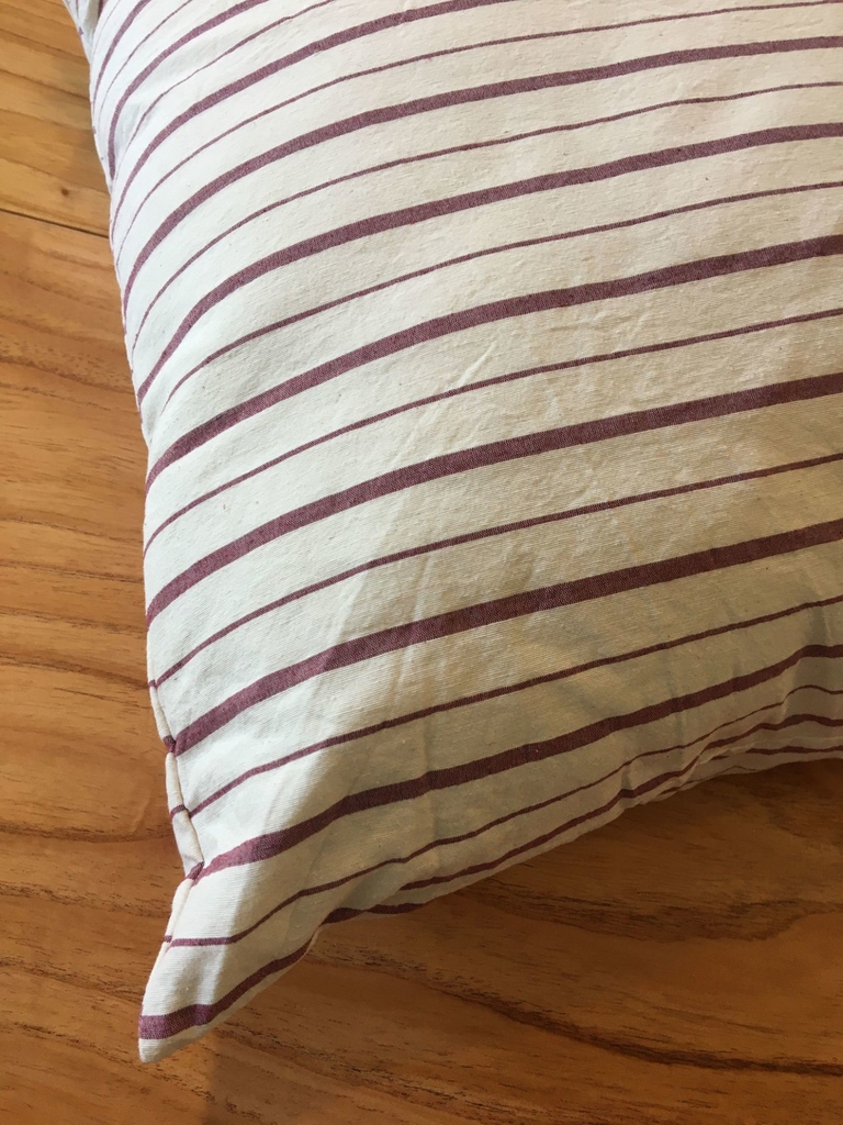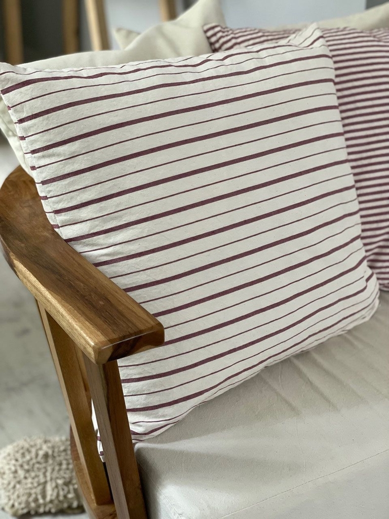 Almohadón estampado con rayas bordo. Vellón siliconado. Medidas 50x50cm.